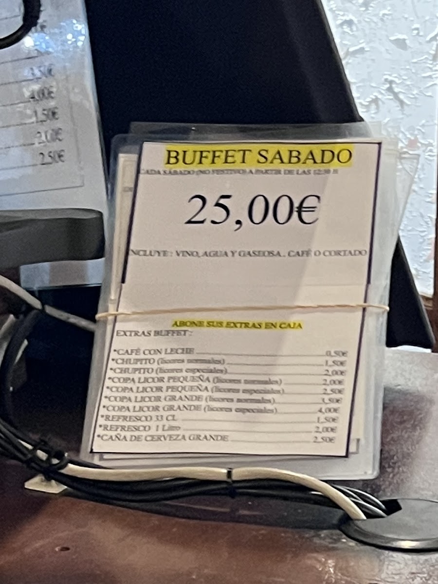 “ A diverse array of Spanish culinary offerings is available at the buffet. The cost per person is a mere 15 euros, and the servings are unlimited. ”